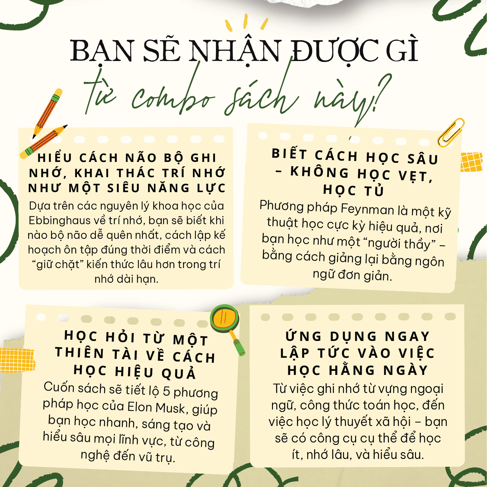 Nếu câu trả lời là CÓ, thì COMBO 3 cuốn PHƯƠNG PHÁP HỌC CỦA VĨ NHÂN chính là chìa khóa giúp bạn thay đổi hoàn toàn cách học và tư duy của mình.