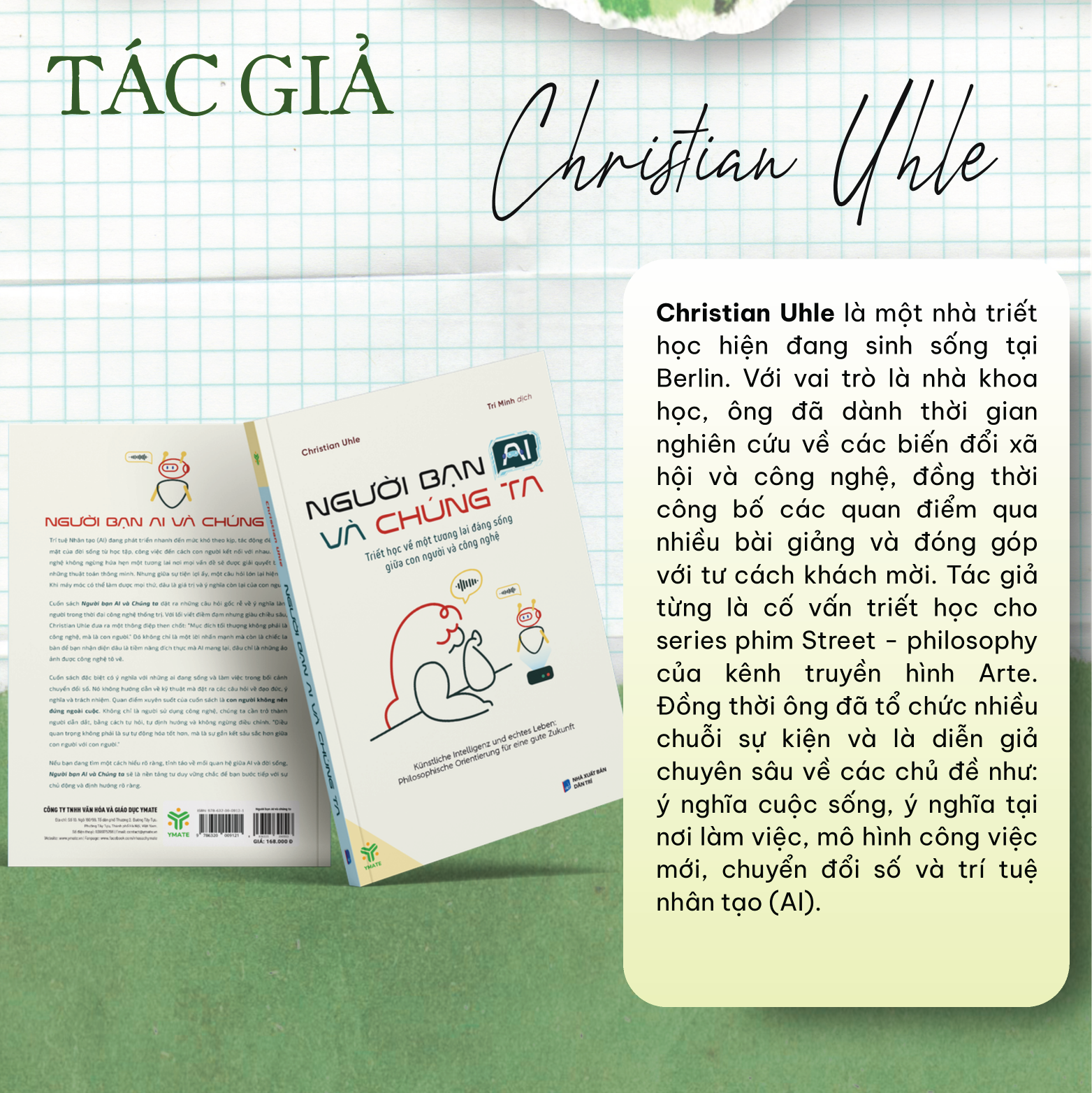 Christian Uhle là một nhà triết học hiện đang sinh sống tại Berlin. Với vai trò là nhà khoa học, ông đã dành thời gian nghiên cứu về các biến đổi xã hội và công nghệ, đồng thời công bố các quan điểm qua nhiều bài giảng và đóng góp với tư cách khách mời. Tác giả từng là cố vấn triết học cho series phim Street – philosophy của kênh truyền hình Arte. Đồng thời ông đã tổ chức nhiều chuỗi sự kiện và là diễn giả chuyên sâu về các chủ đề như: ý nghĩa cuộc sống, ý nghĩa tại nơi làm việc, mô hình công việc mới, chuyển đổi số và trí tuệ nhân tạo (AI).
