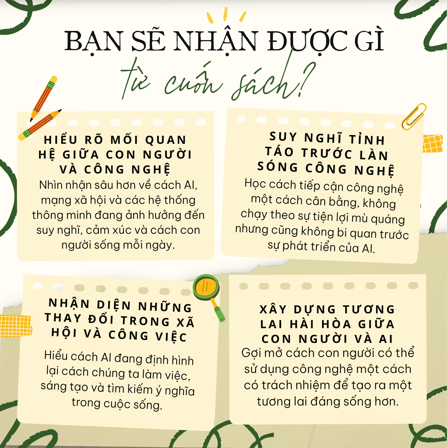 - Nhìn nhận mạng xã hội, Internet và AI với góc nhìn tỉnh táo và sâu sắc hơn.